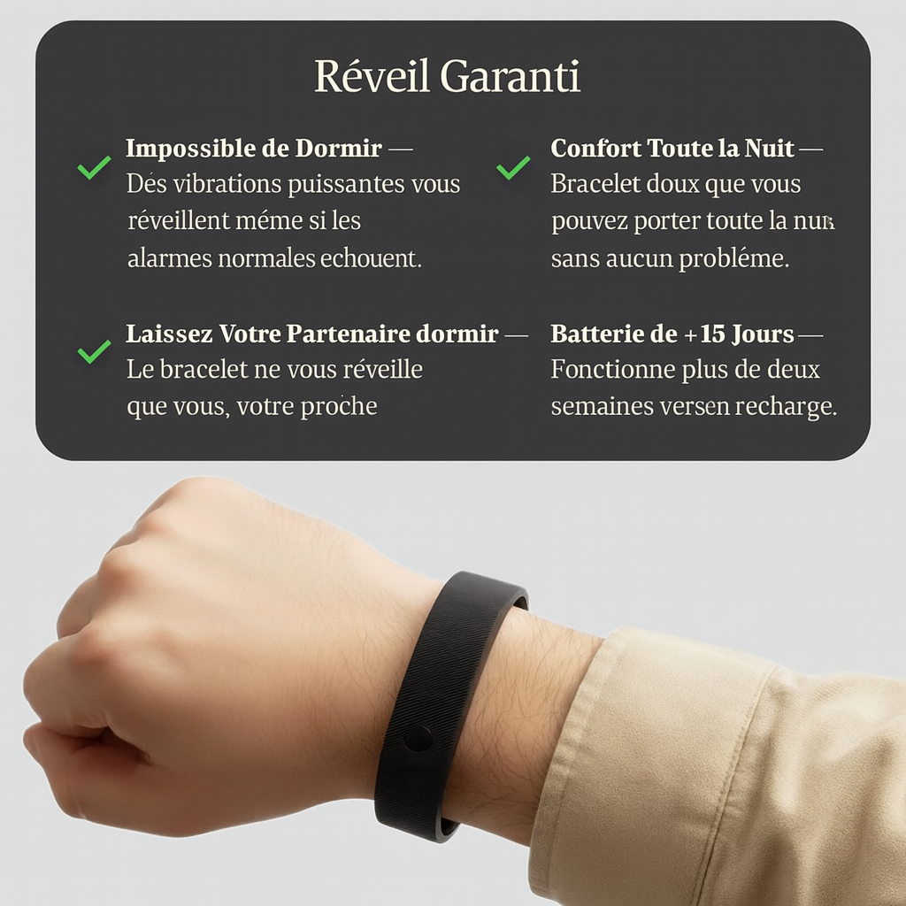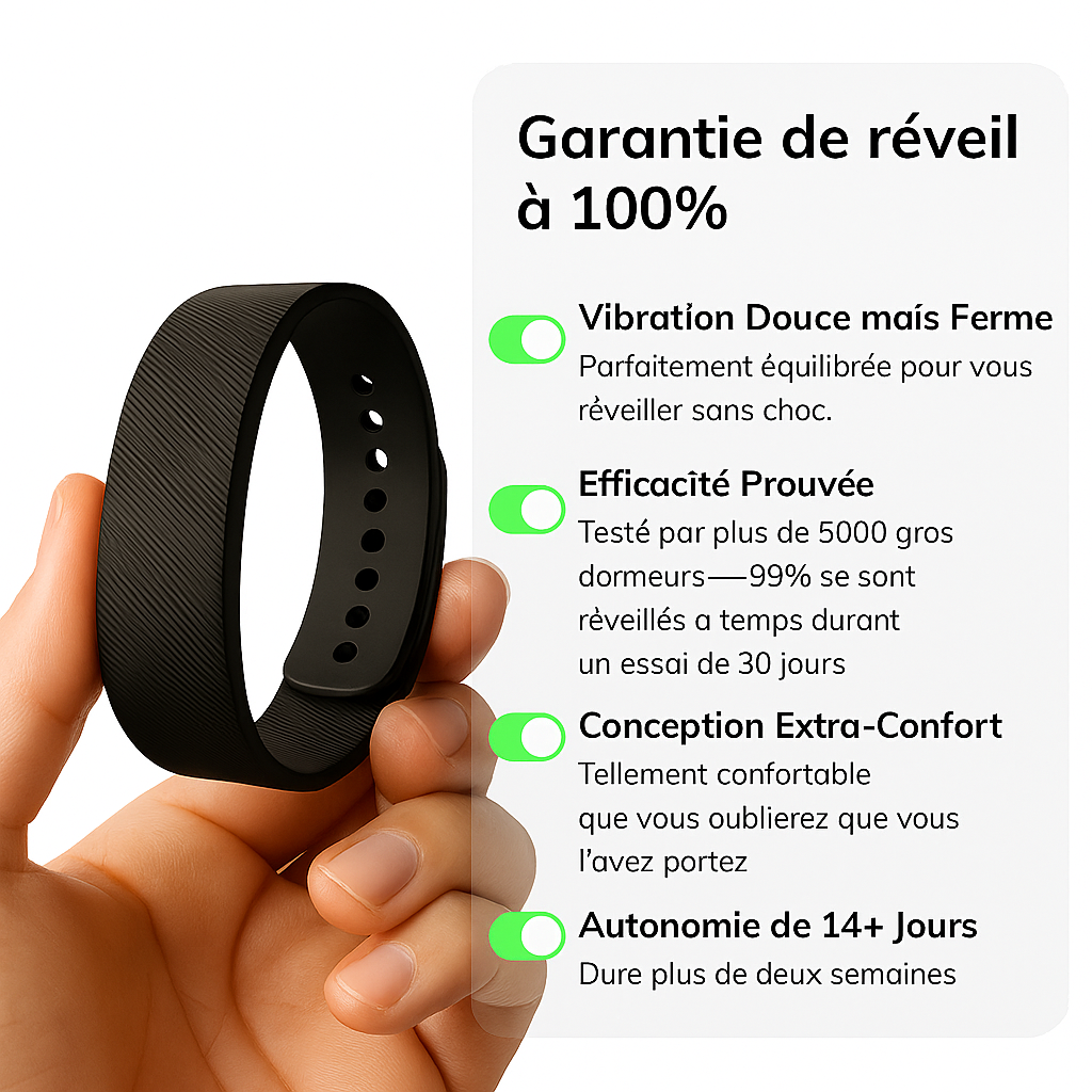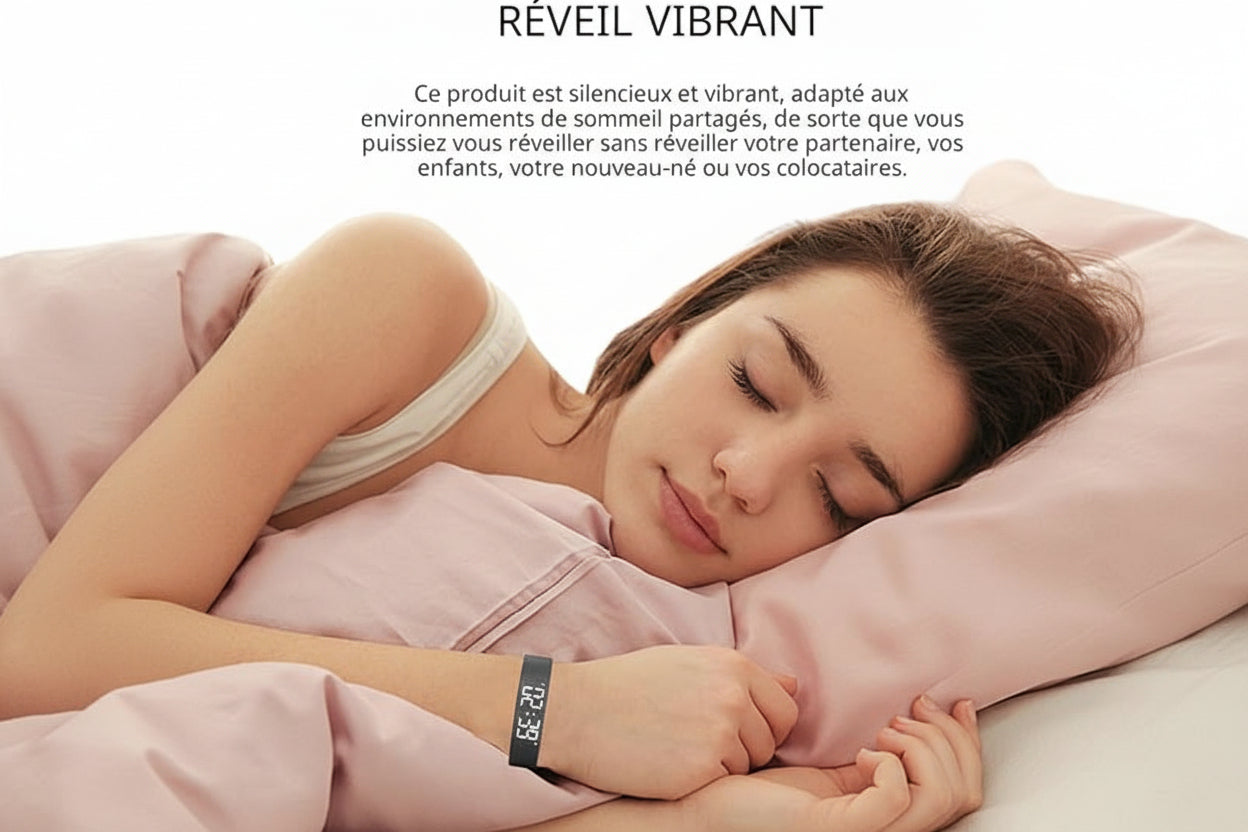 Jeannyva Vibe™ utilise la stimulation tactile pour un réveil naturel qui respecte votre cycle de sommeil, éliminant ainsi le brouillard cérébral du matin.